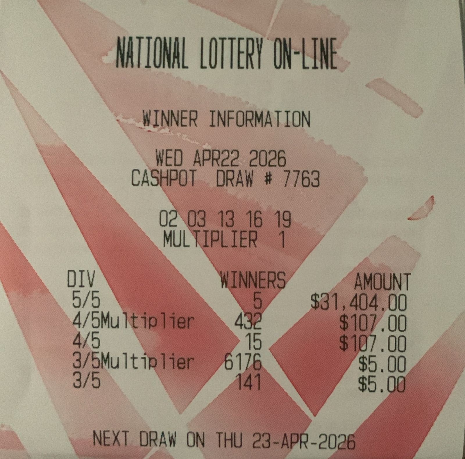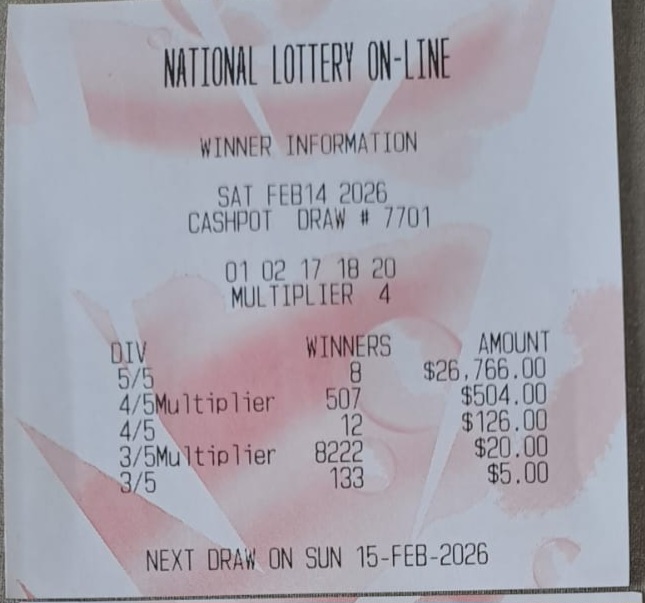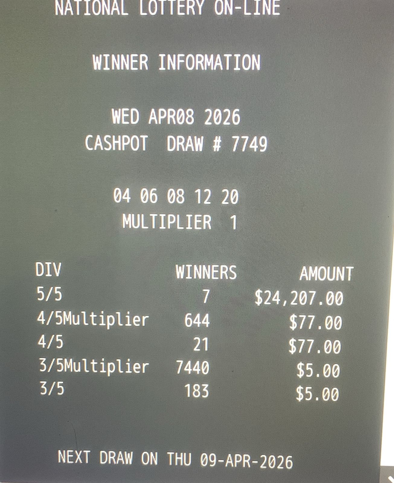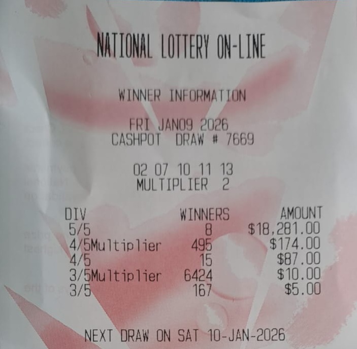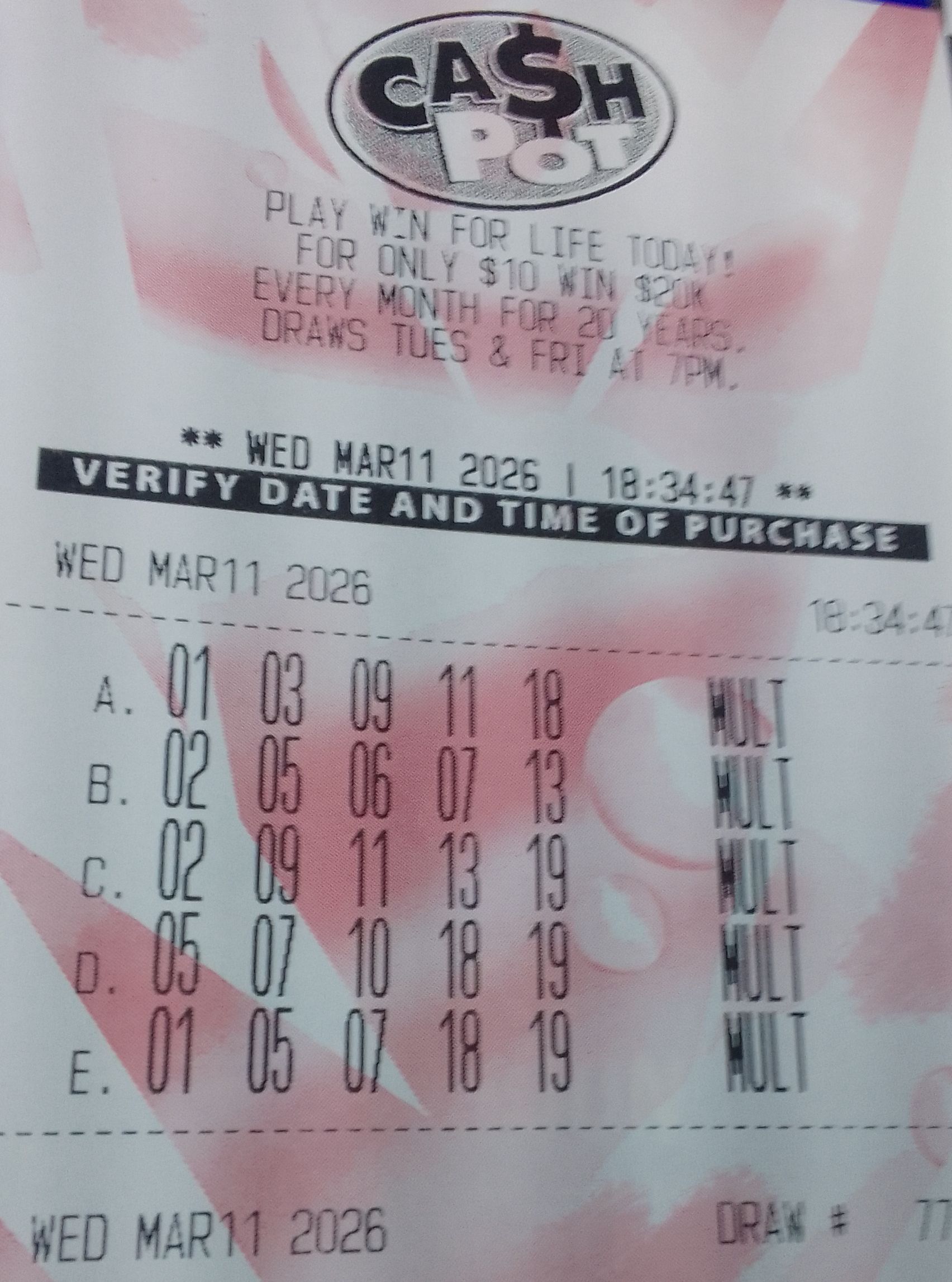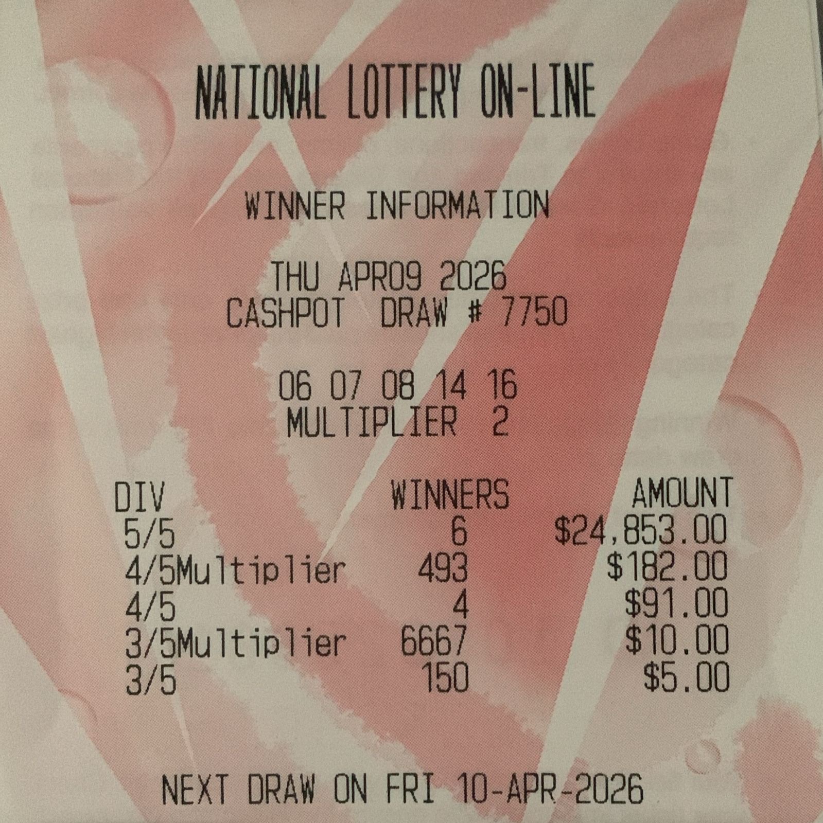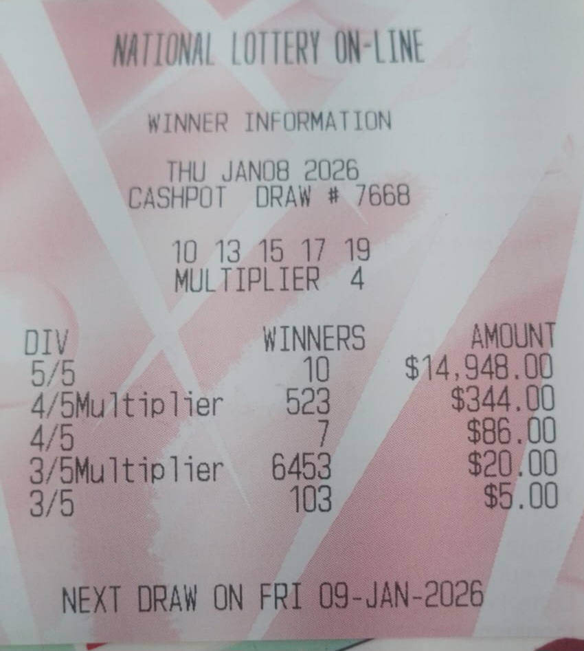 PLEASE NOTE THAT THIS IS NOT THE NLCB's OFFICIAL WEBSITE. However, the Cash Pot results are primarily acquired from the NLCB's televised draws to ensure accuracy. Your Cash Pot ticket, not the play slip, is your only valid receipt. All winning Cash Pot tickets must be validated at an online agent and claimed no later than 180 days from the Cash Pot draw date. Good luck.