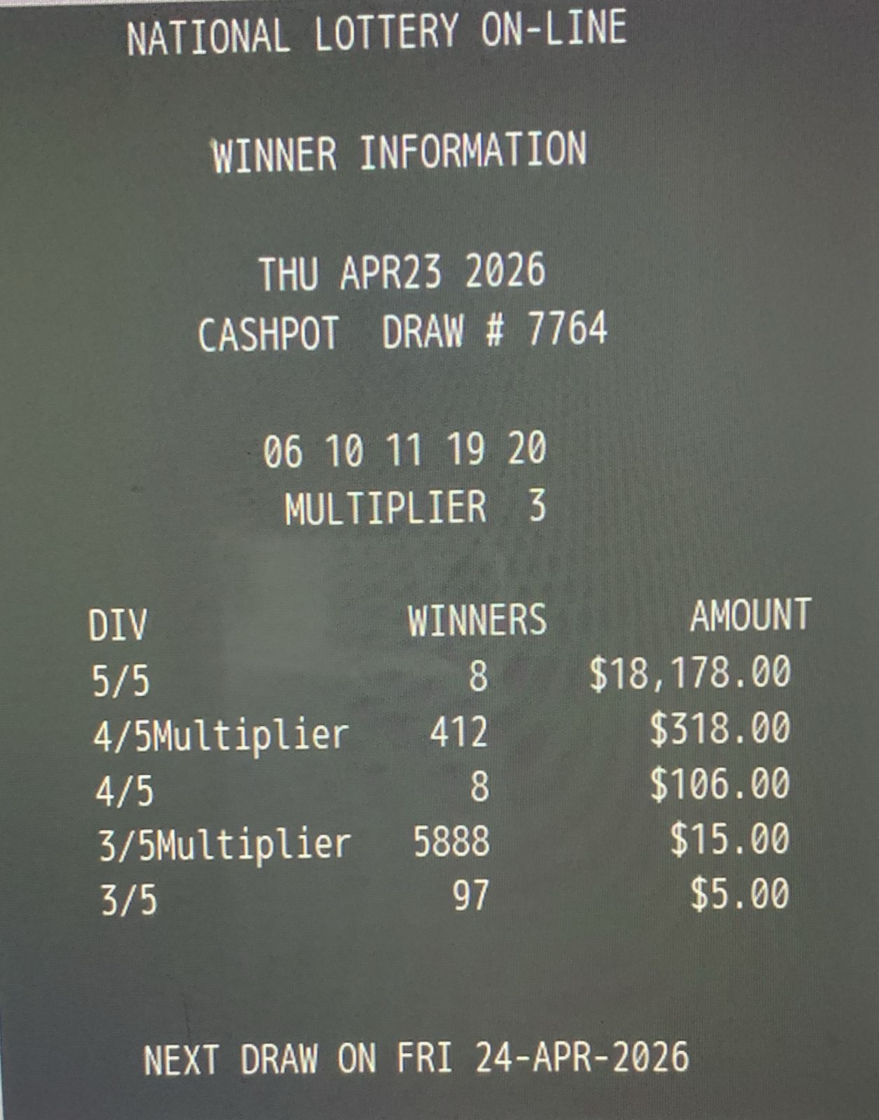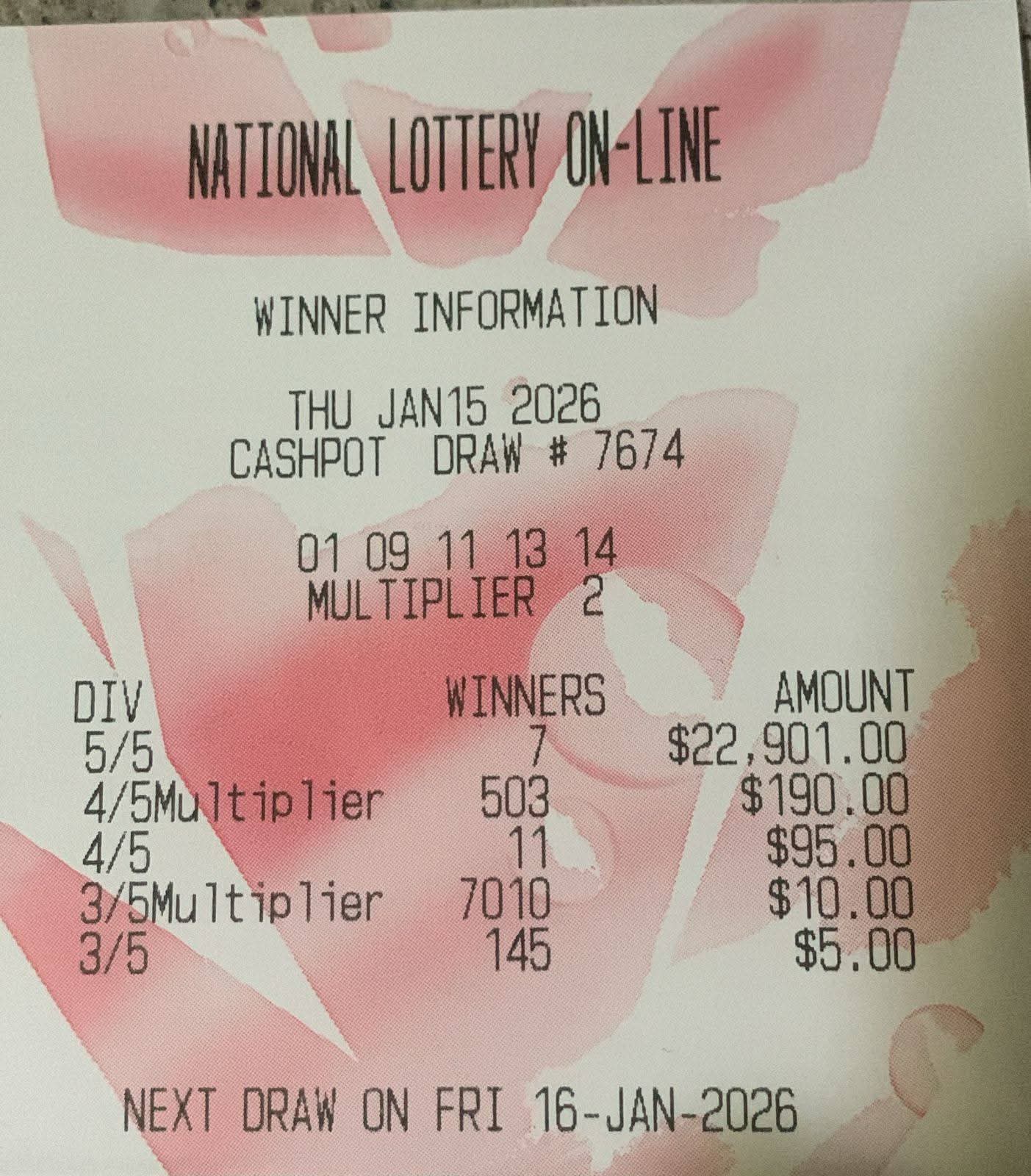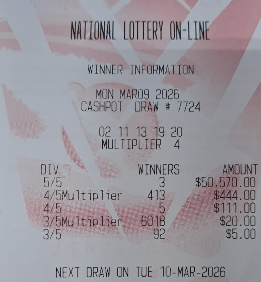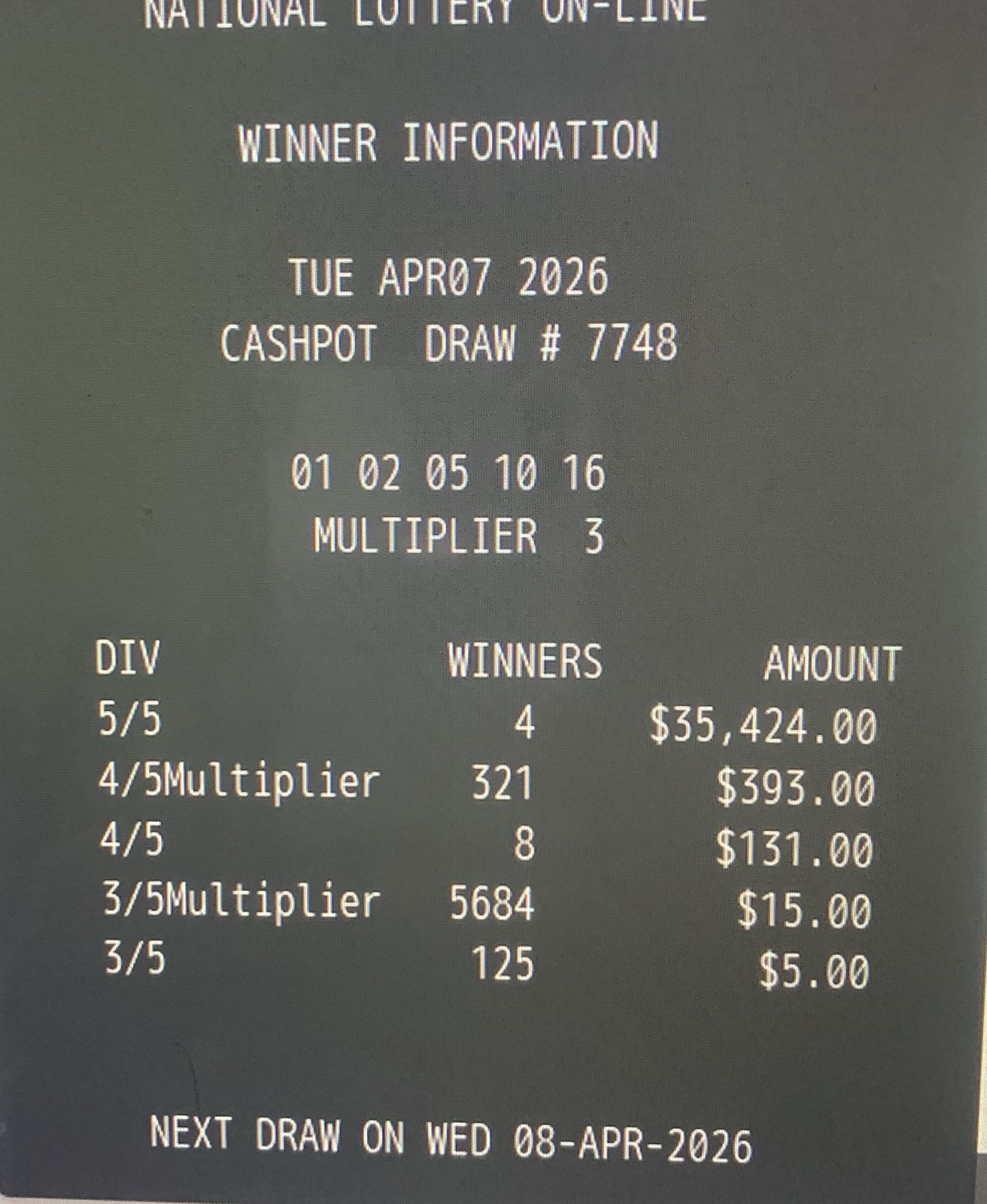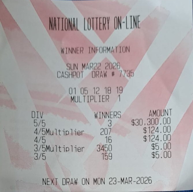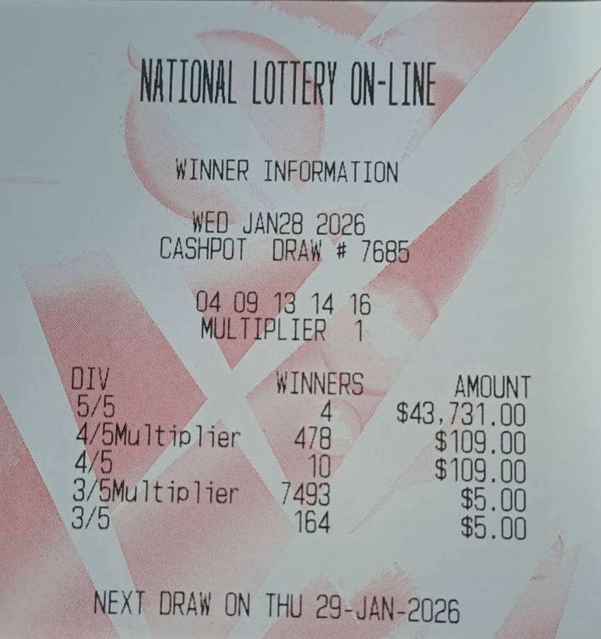 PLEASE NOTE THAT THIS IS NOT THE NLCB's OFFICIAL WEBSITE. However, the Cash Pot results are primarily acquired from the NLCB's televised draws to ensure accuracy. Your Cash Pot ticket, not the play slip, is your only valid receipt. All winning Cash Pot tickets must be validated at an online agent and claimed no later than 180 days from the Cash Pot draw date. Good luck.