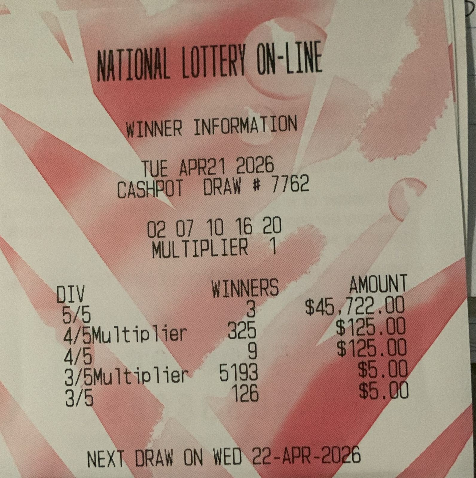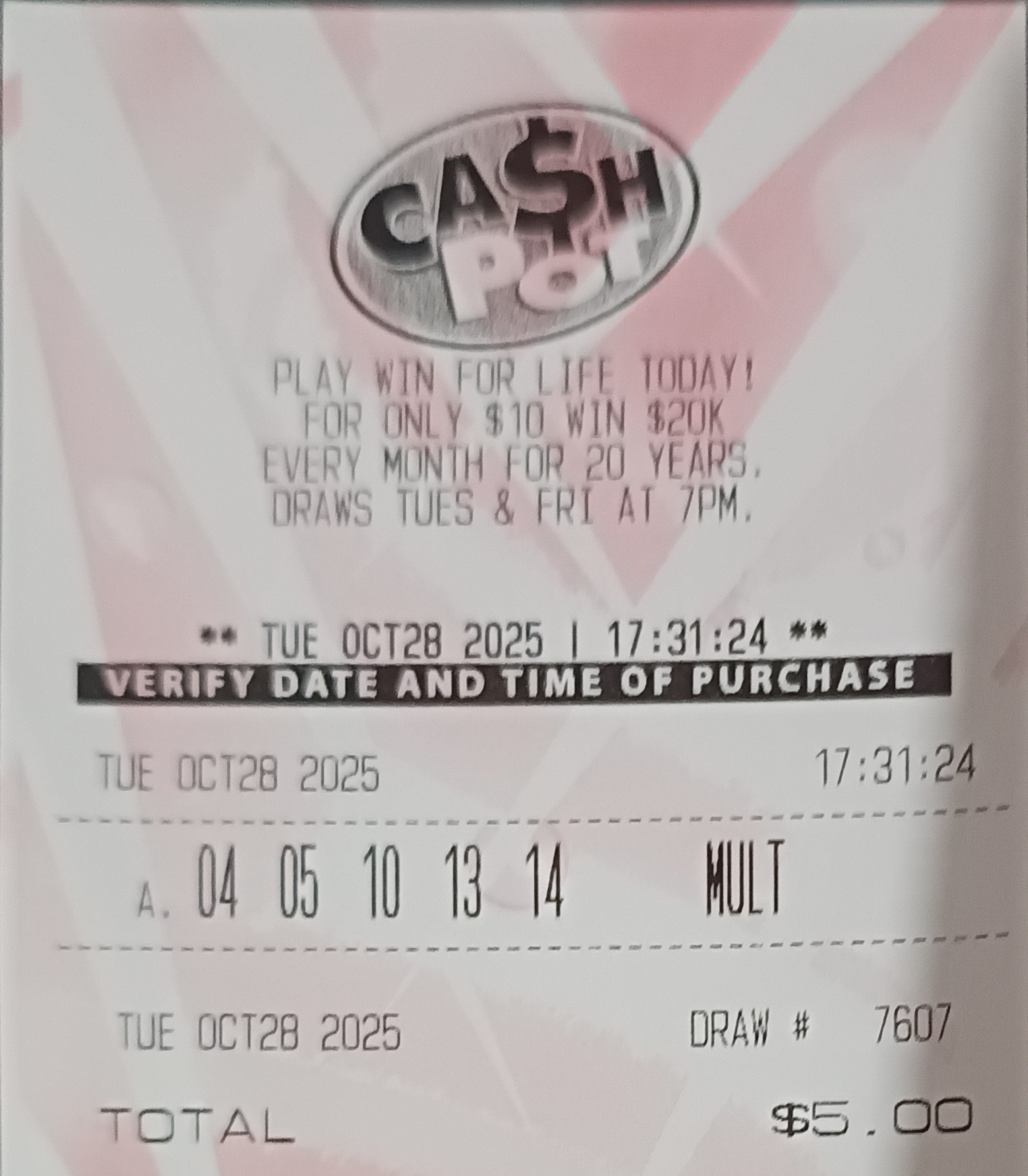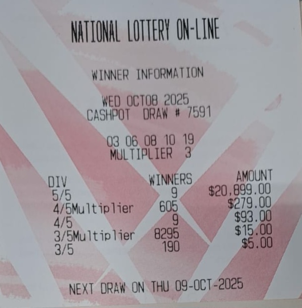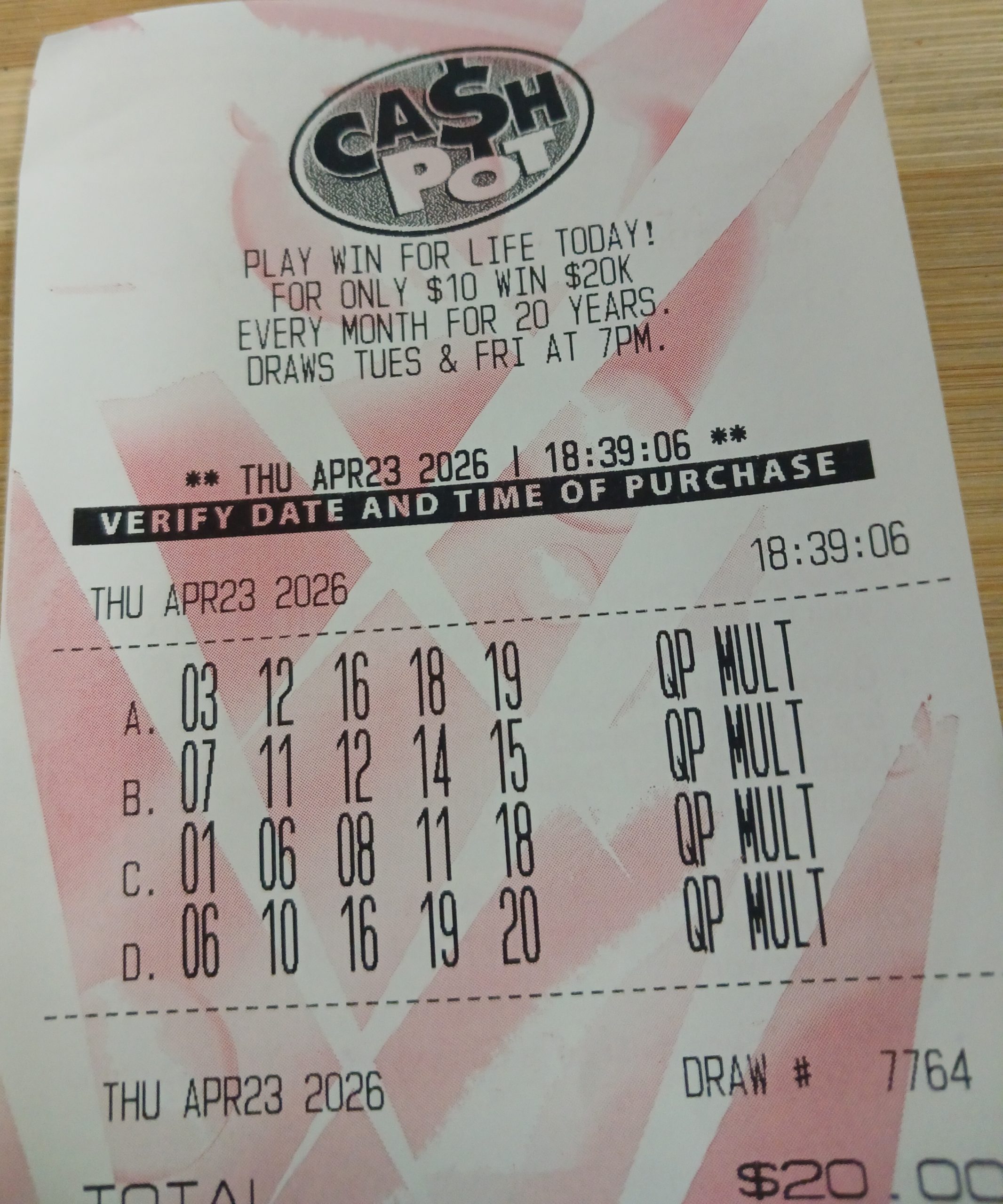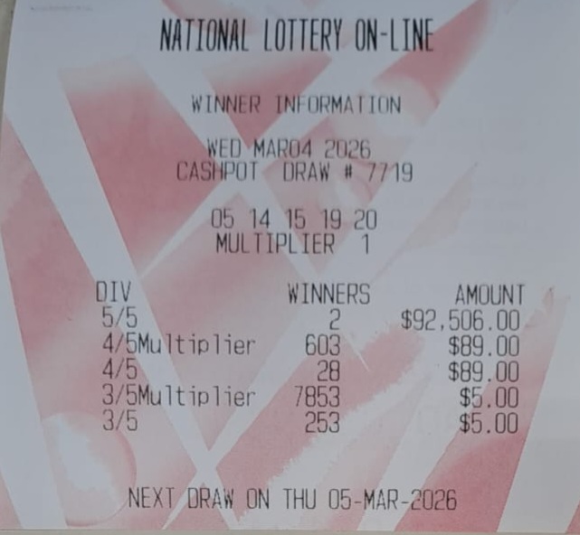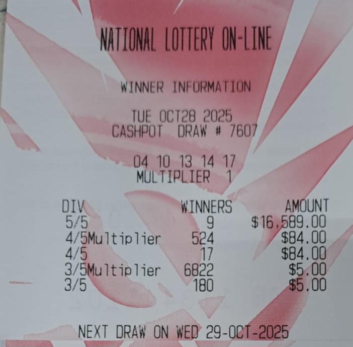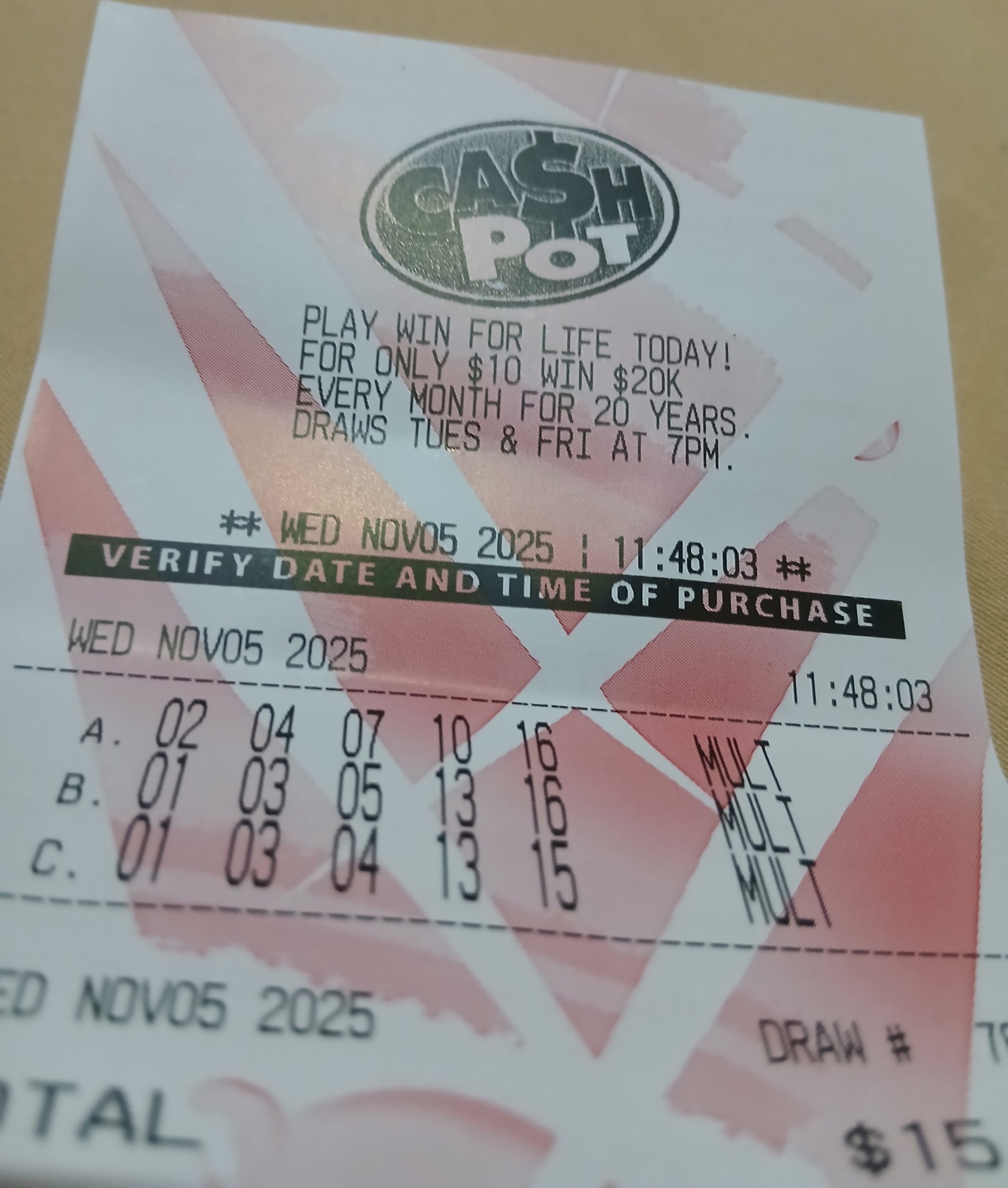 PLEASE NOTE THAT THIS IS NOT THE NLCB's OFFICIAL WEBSITE. However, the Cash Pot results are primarily acquired from the NLCB's televised draws to ensure accuracy. Your Cash Pot ticket, not the play slip, is your only valid receipt. All winning Cash Pot tickets must be validated at an online agent and claimed no later than 180 days from the Cash Pot draw date. Good luck.