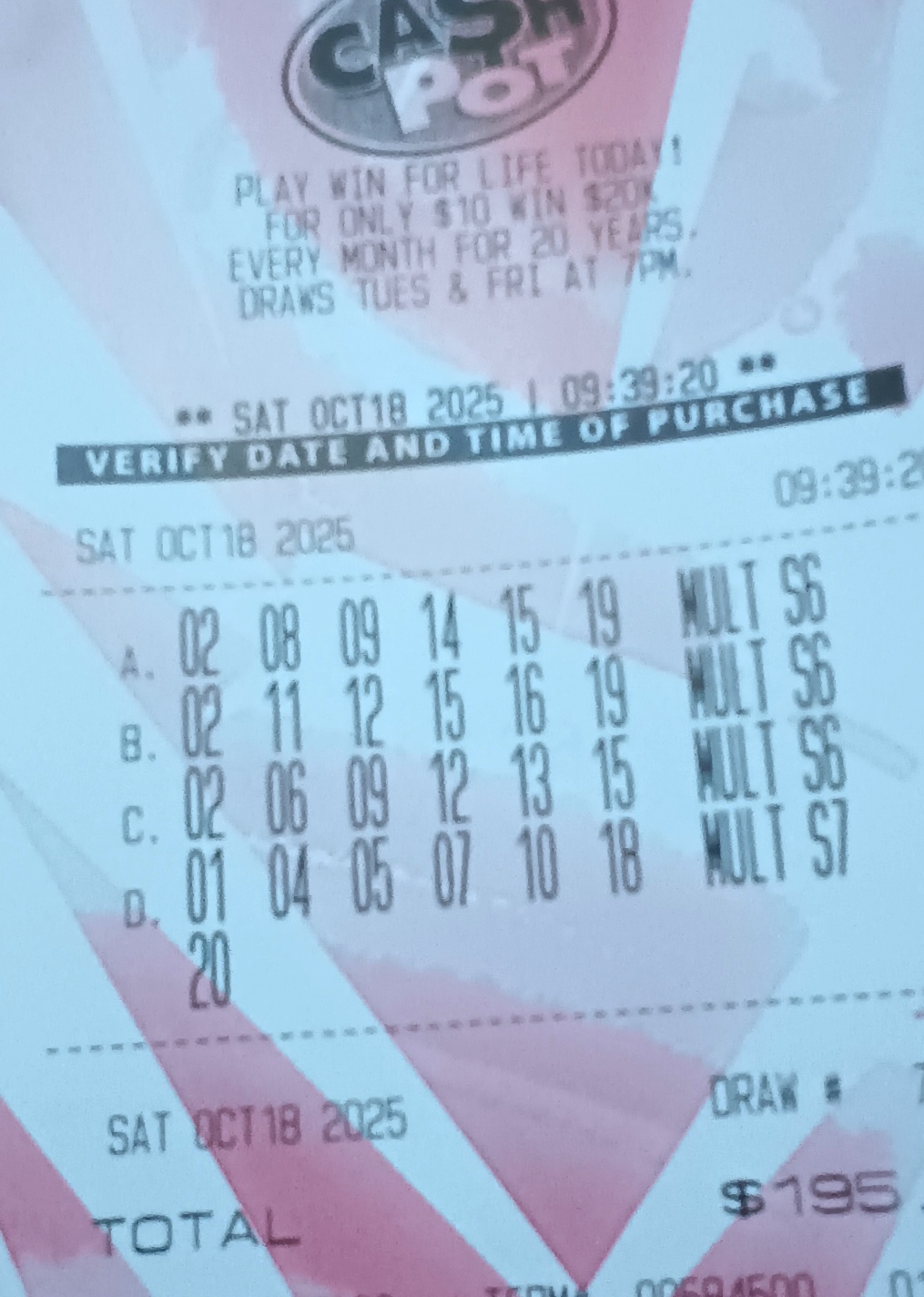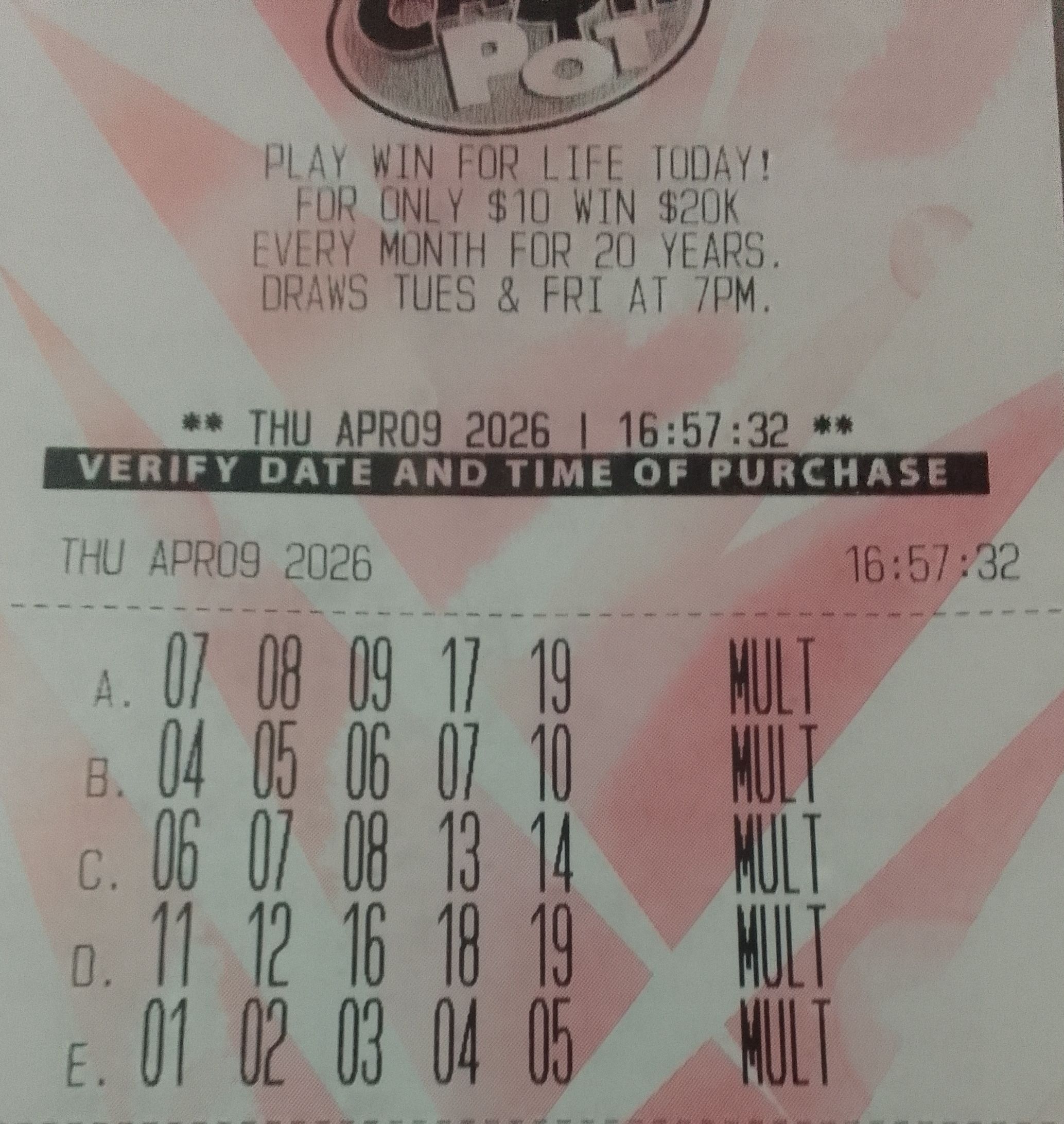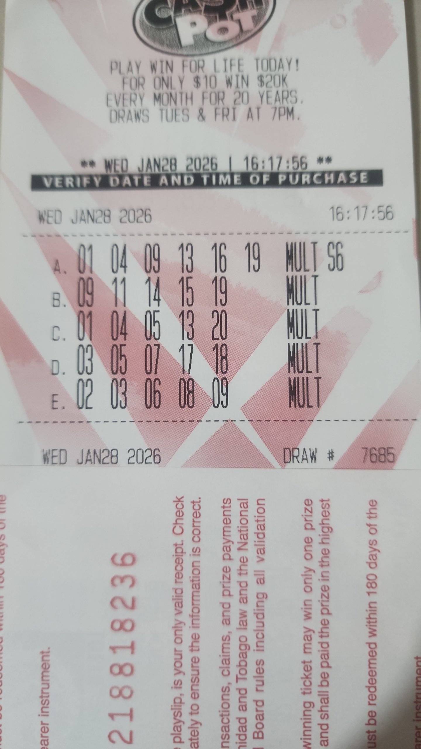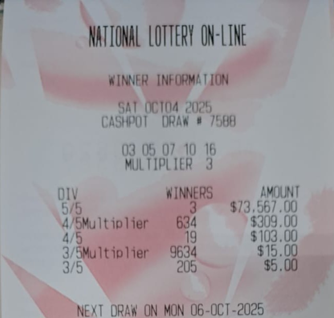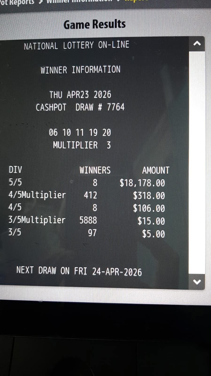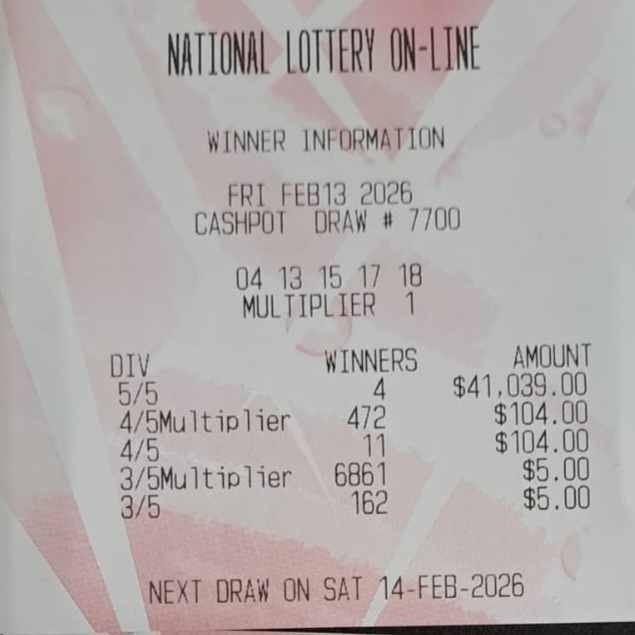 PLEASE NOTE THAT THIS IS NOT THE NLCB's OFFICIAL WEBSITE. However, the Cash Pot results are primarily acquired from the NLCB's televised draws to ensure accuracy. Your Cash Pot ticket, not the play slip, is your only valid receipt. All winning Cash Pot tickets must be validated at an online agent and claimed no later than 180 days from the Cash Pot draw date. Good luck.