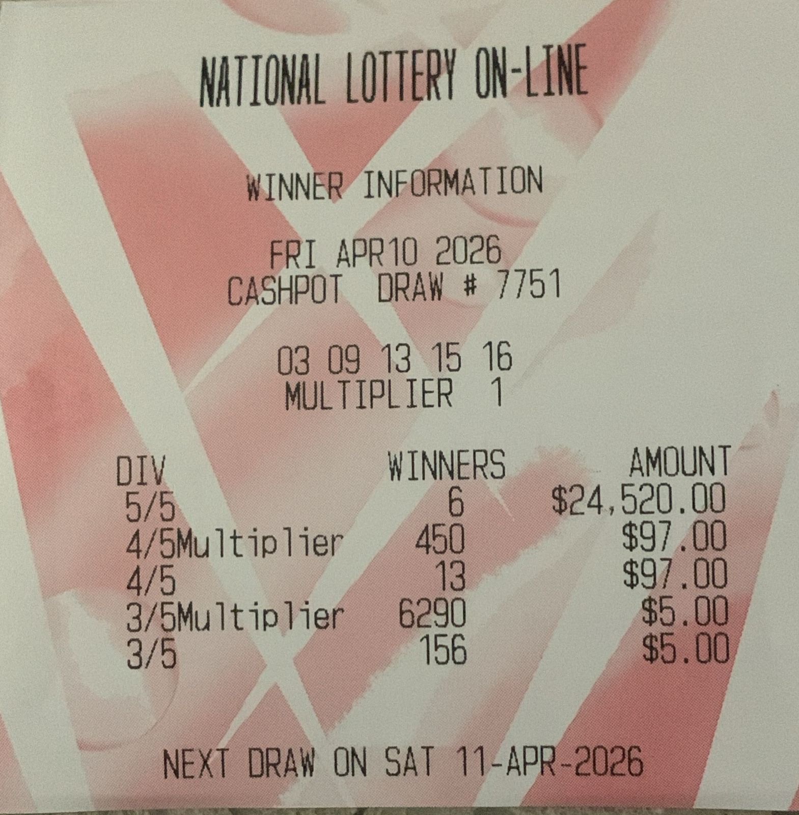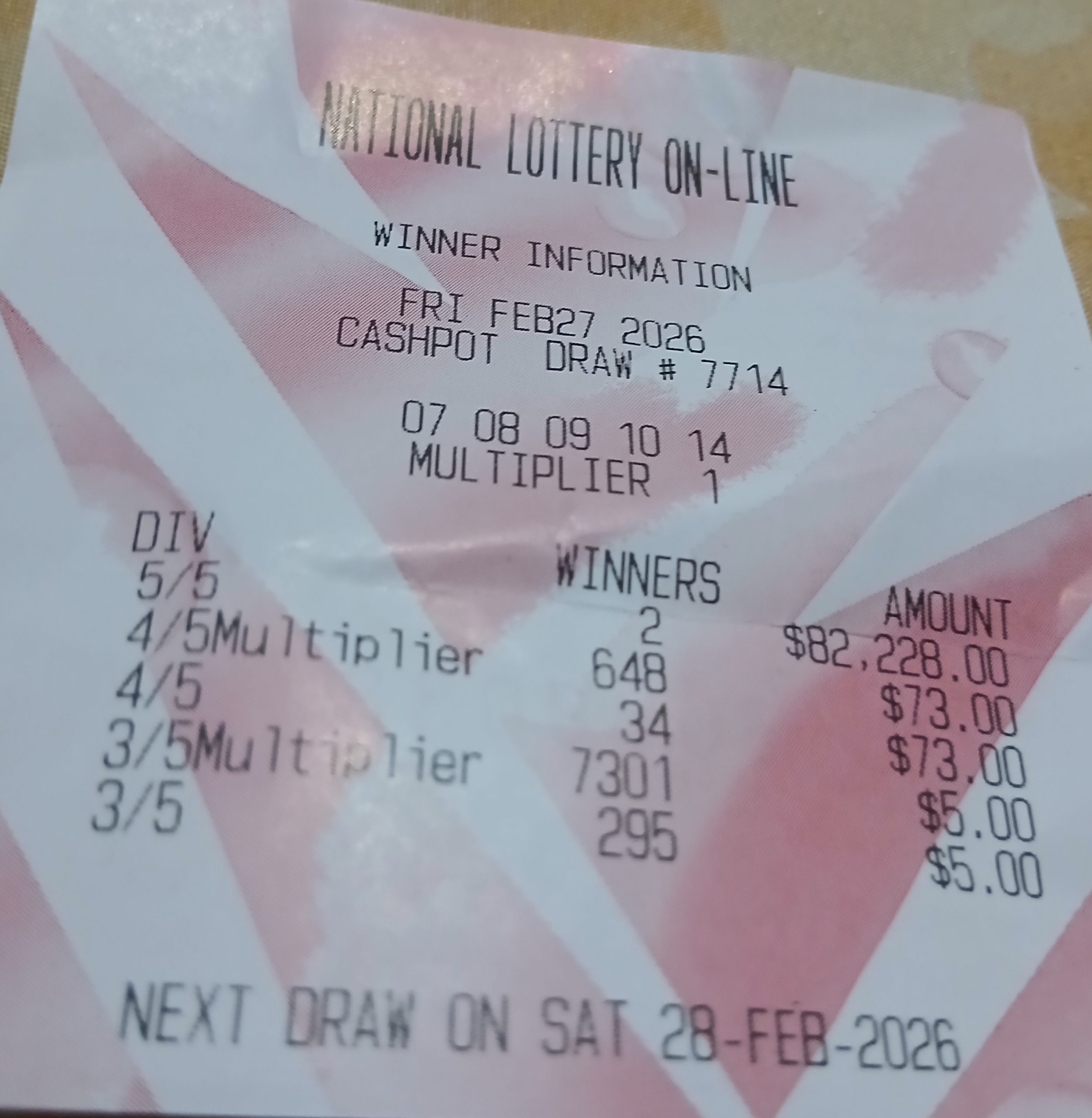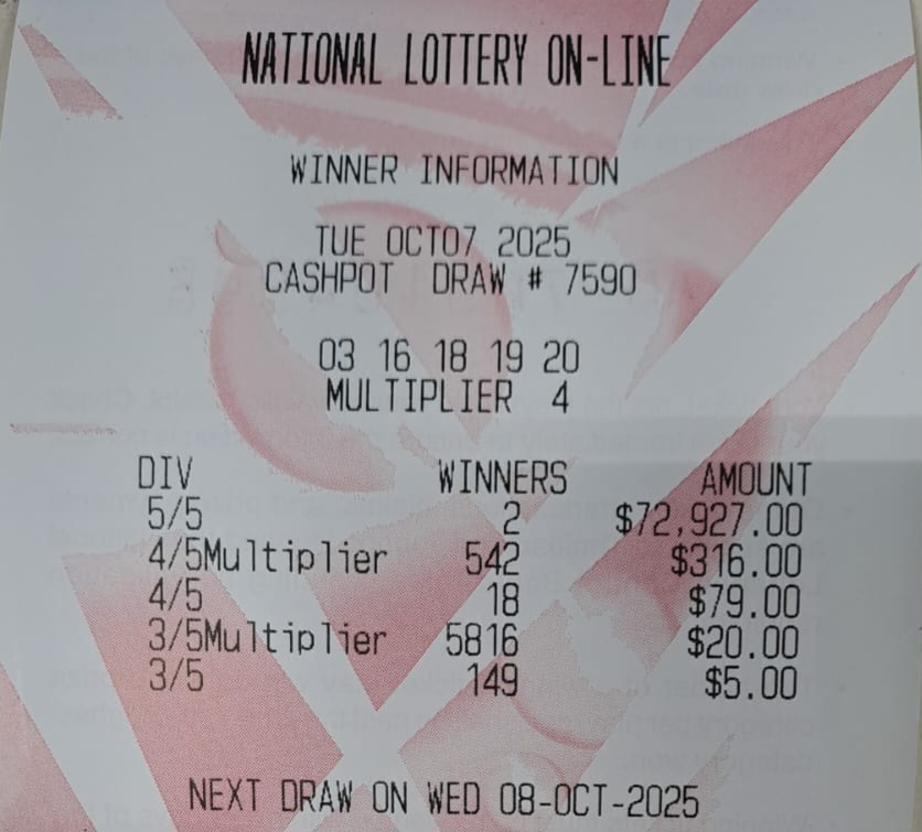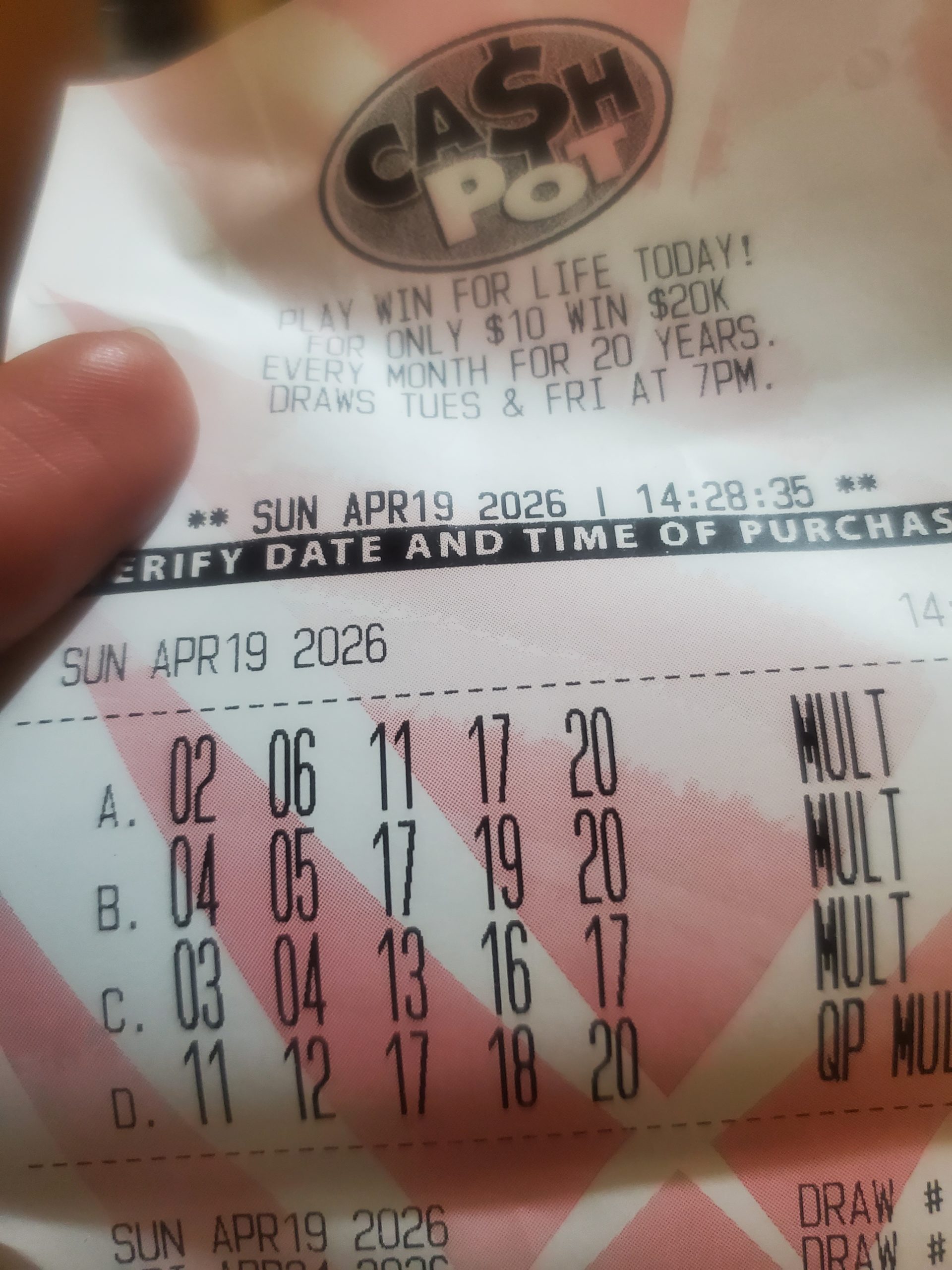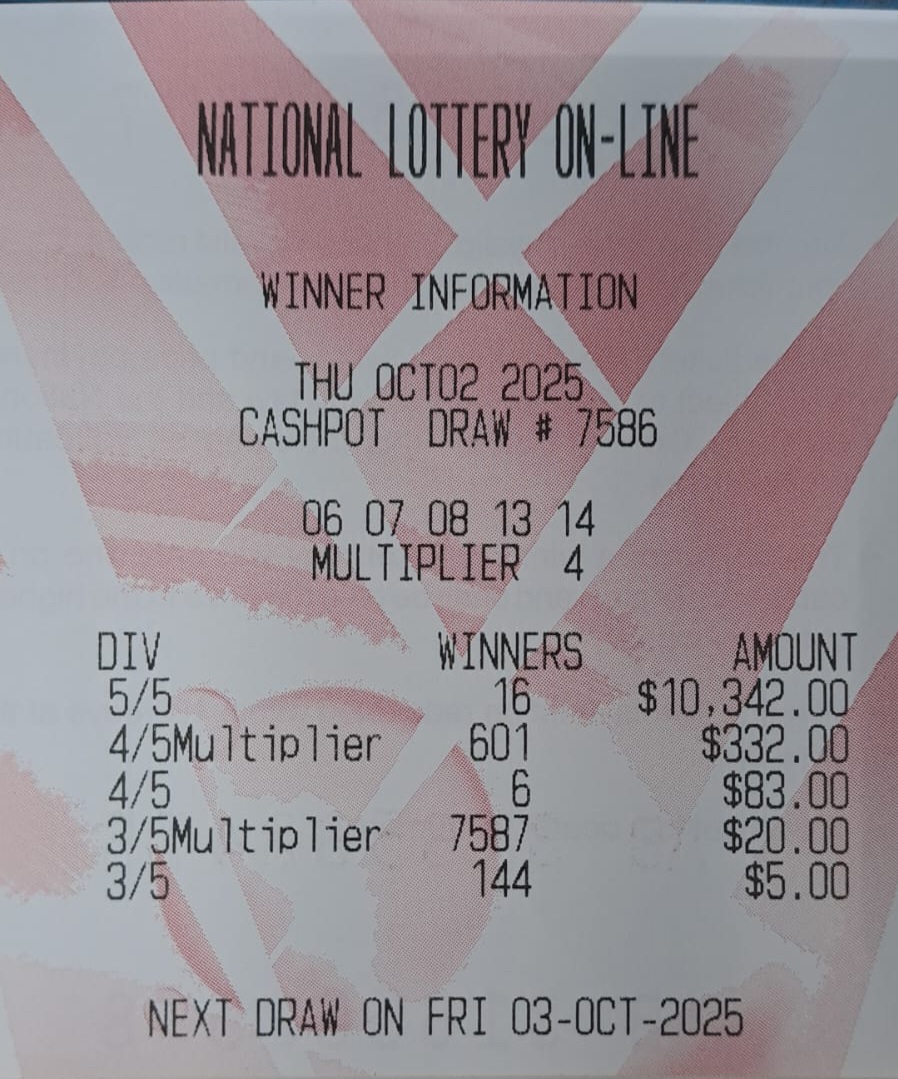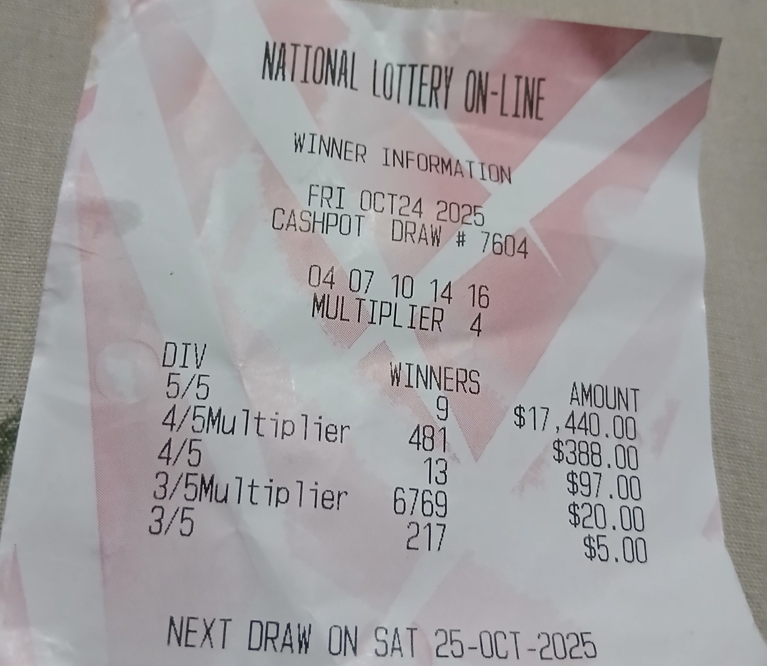 PLEASE NOTE THAT THIS IS NOT THE NLCB's OFFICIAL WEBSITE. However, the Cash Pot results are primarily acquired from the NLCB's televised draws to ensure accuracy. Your Cash Pot ticket, not the play slip, is your only valid receipt. All winning Cash Pot tickets must be validated at an online agent and claimed no later than 180 days from the Cash Pot draw date. Good luck.