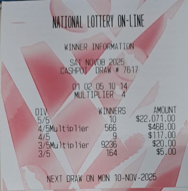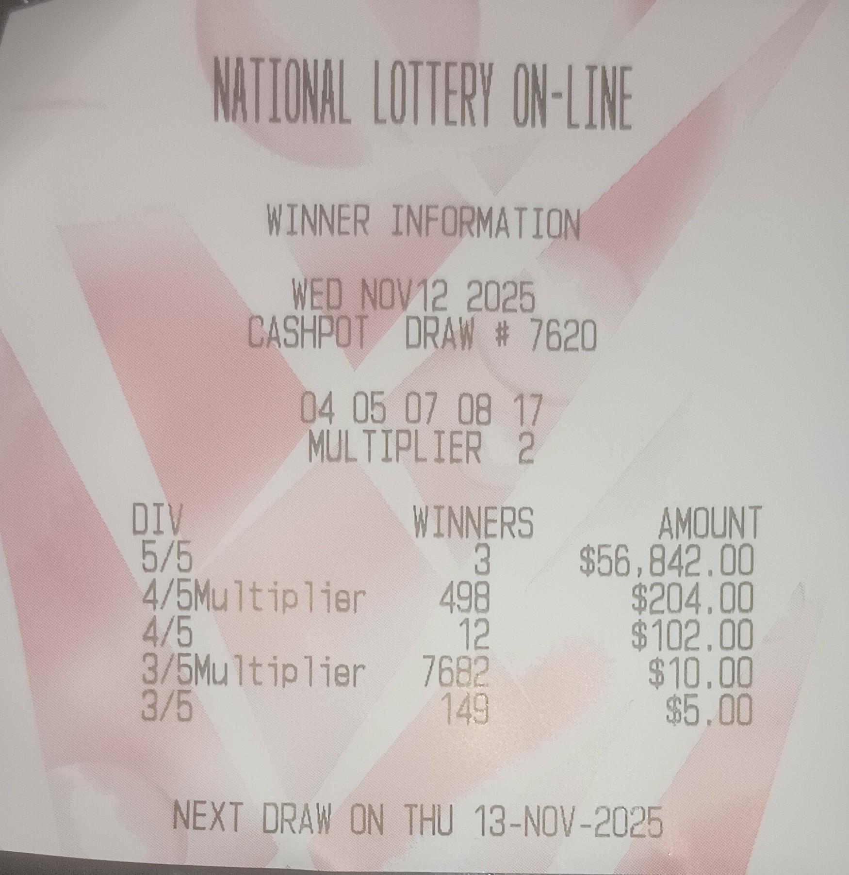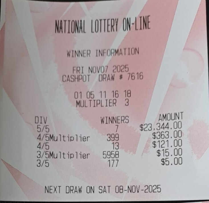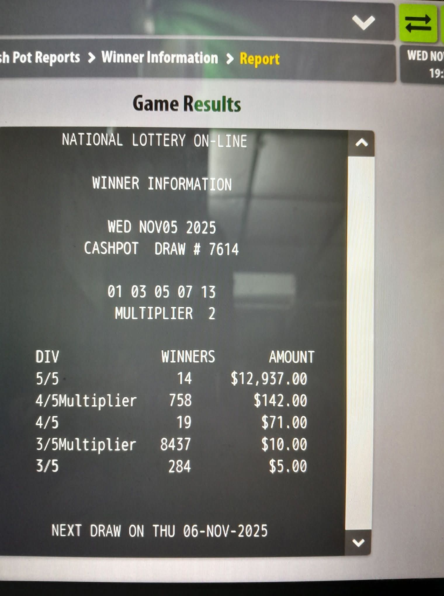 Can someone please put up the winning payout slip for Friday’s draw #7610 please thanks?!