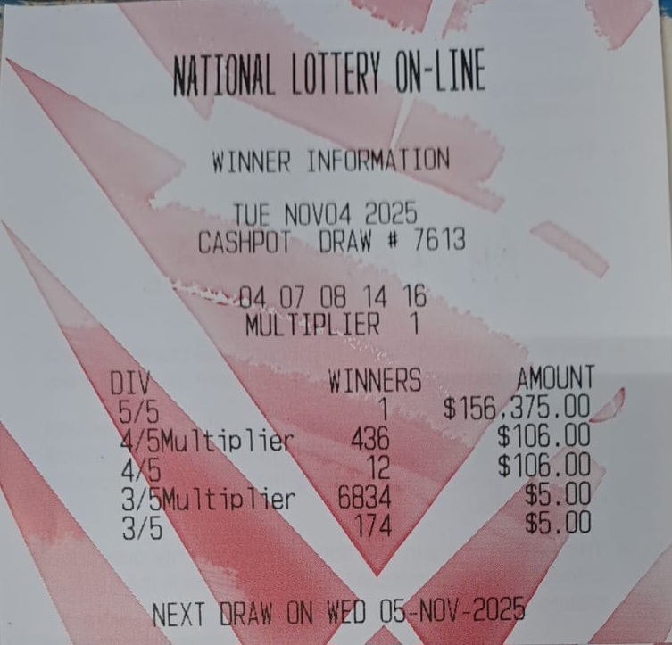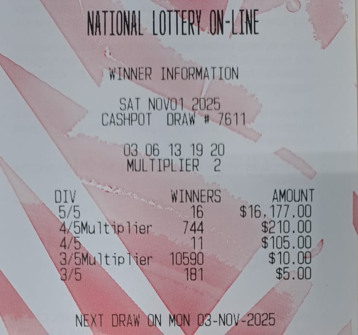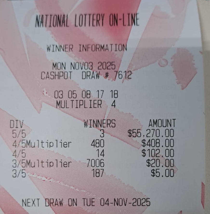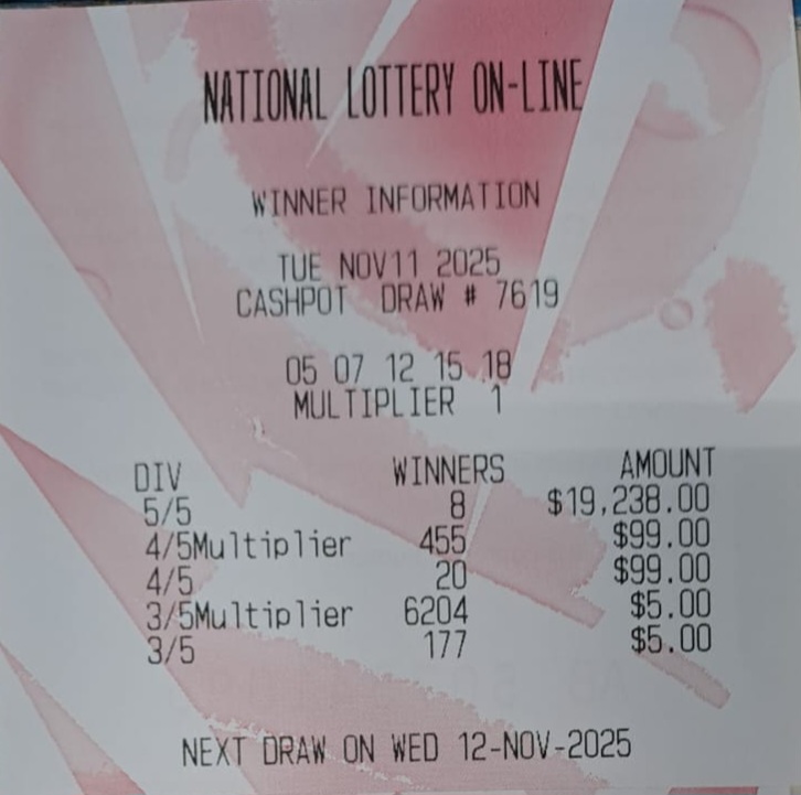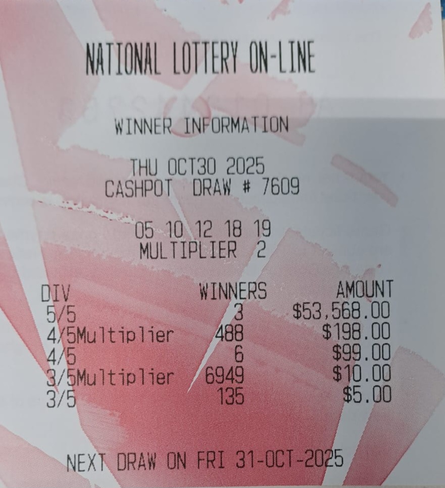 Can someone please put up the winning payout slip for Friday’s draw #7610 please thanks?!