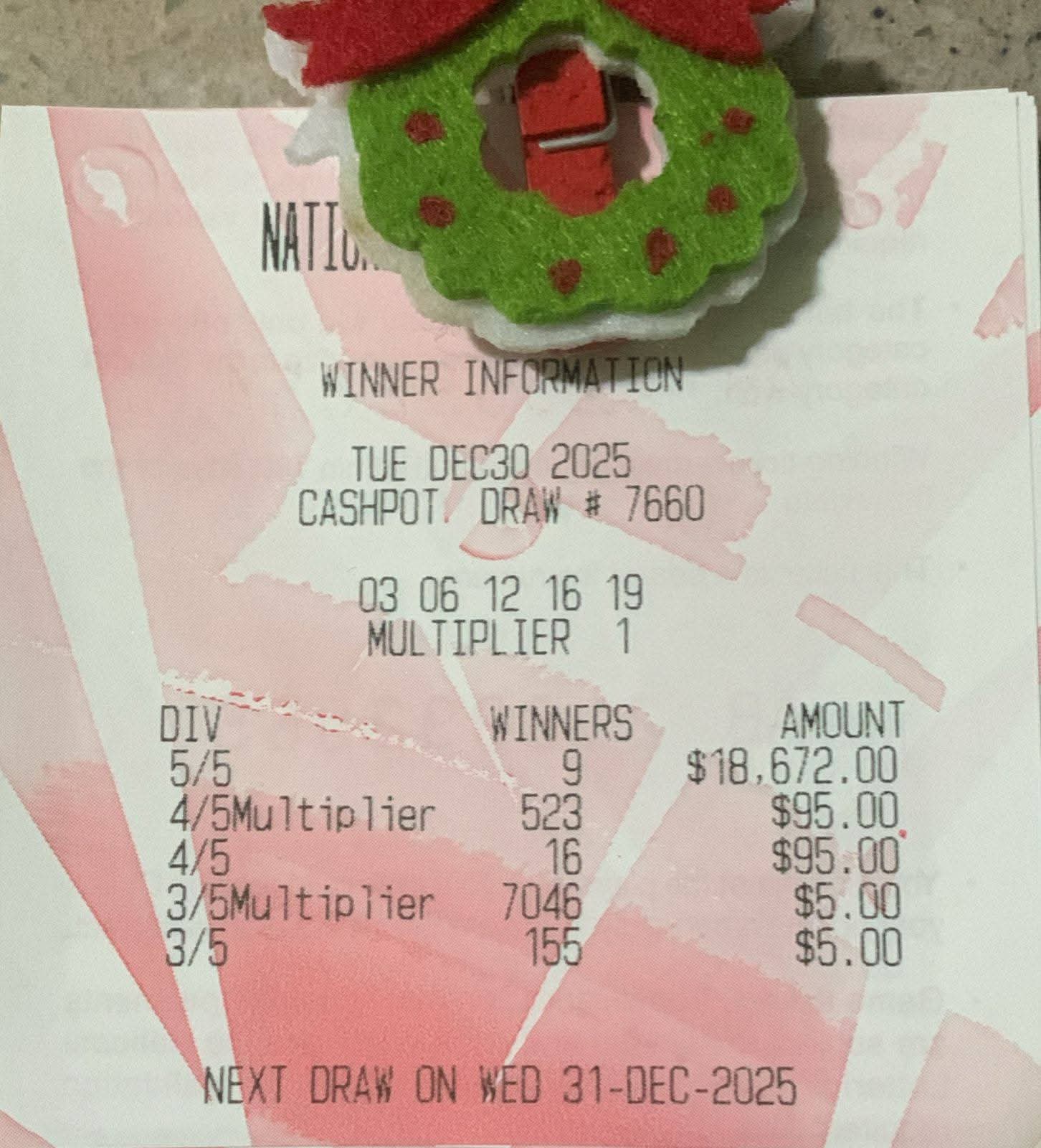 Hi anyone have the winners information slip
