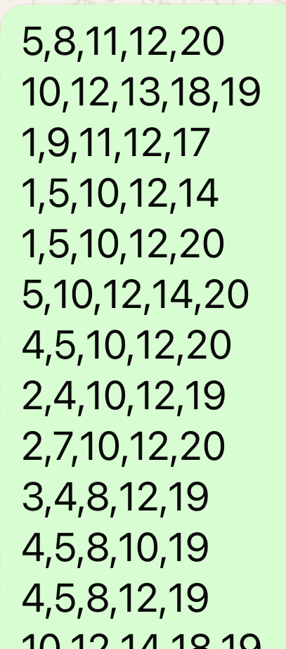 1,2,7,10,12 maybe I just unlucky 😕 I really don’t know why this so hard to win