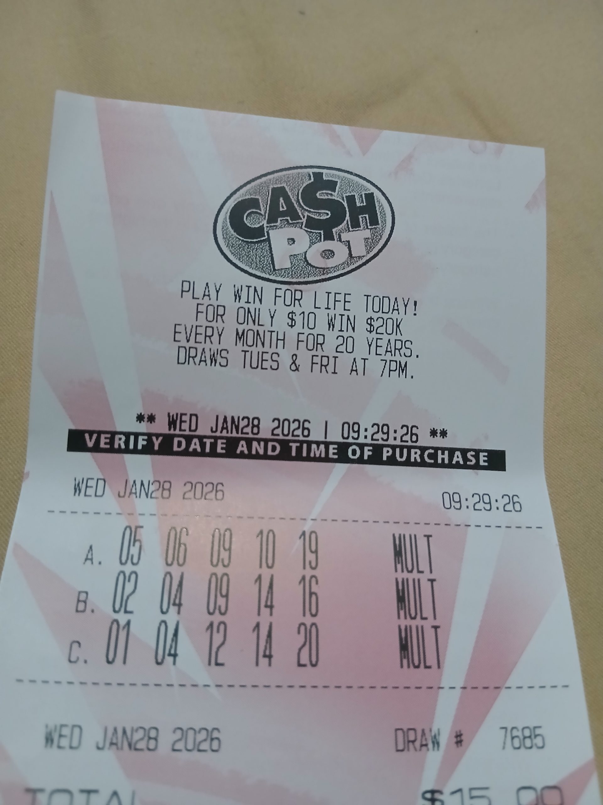 You have the wrong information….. Ca$hpot will only be drawn ONCE each day….