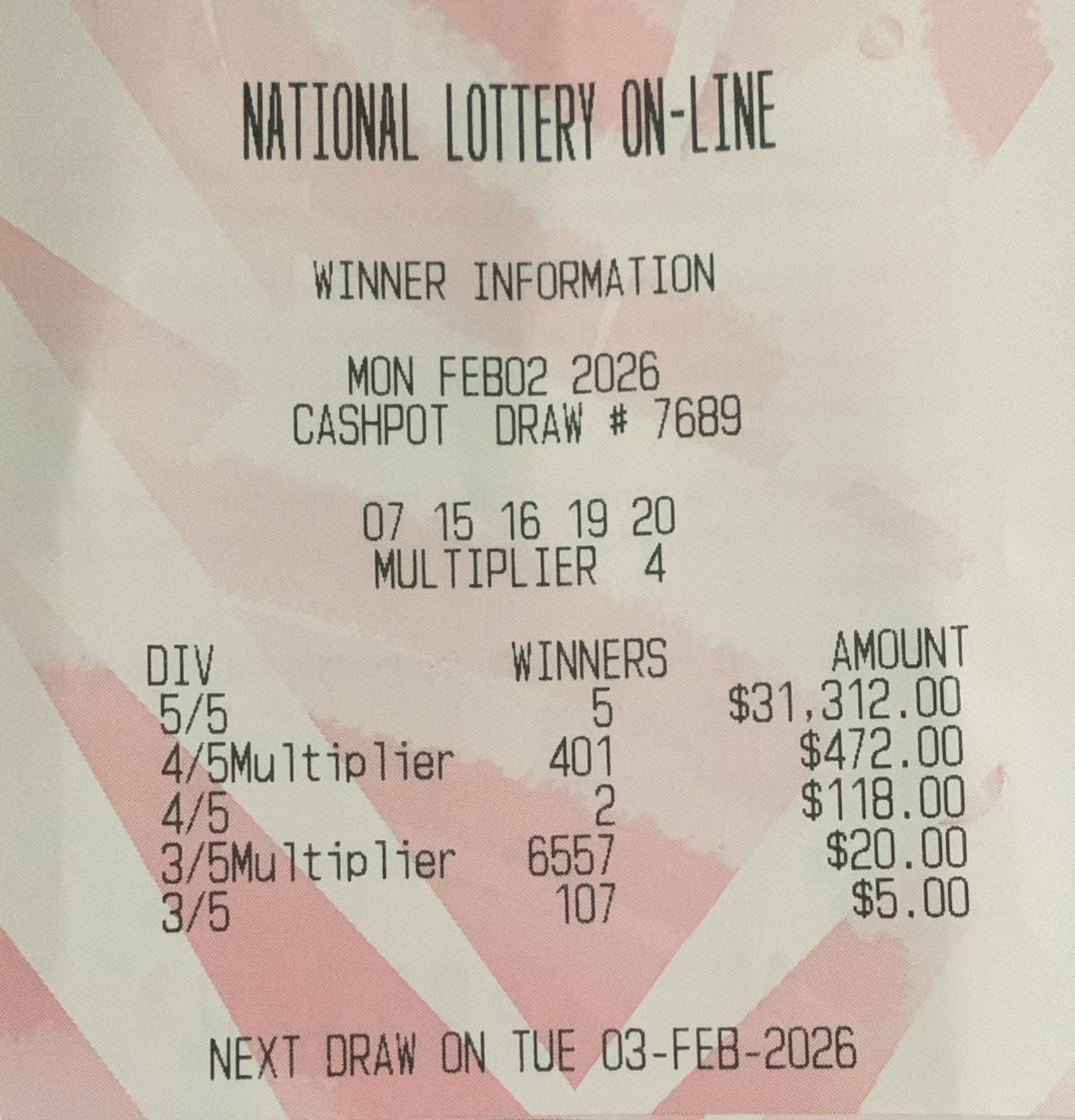 Draw Number: 7689