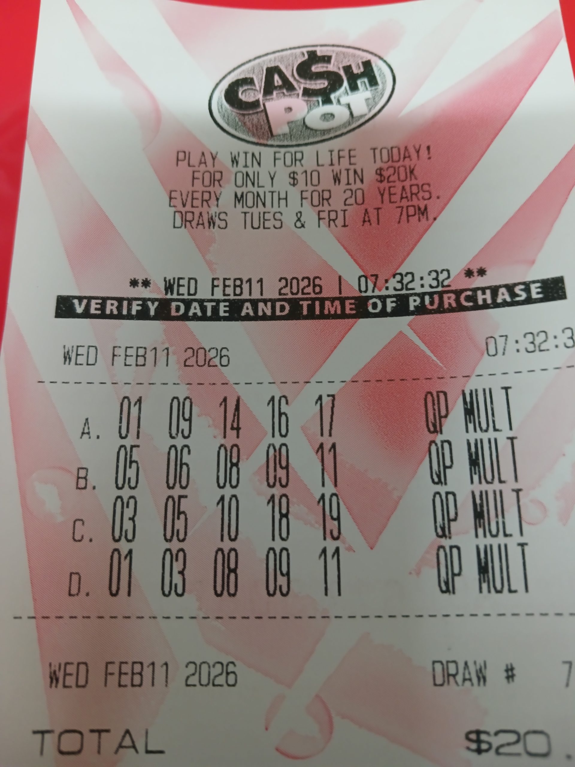 I had a strange experience when I went to play my cashpot this afternoon. There is supposed to be gaming tomorrow, Sunday. I went with my playslip for 2 consecutive draws, today and tomorrow. The operator told me the terminal will not process tomorrow’s draw. I will have to come back tomorrow to play. I had to play for today only.