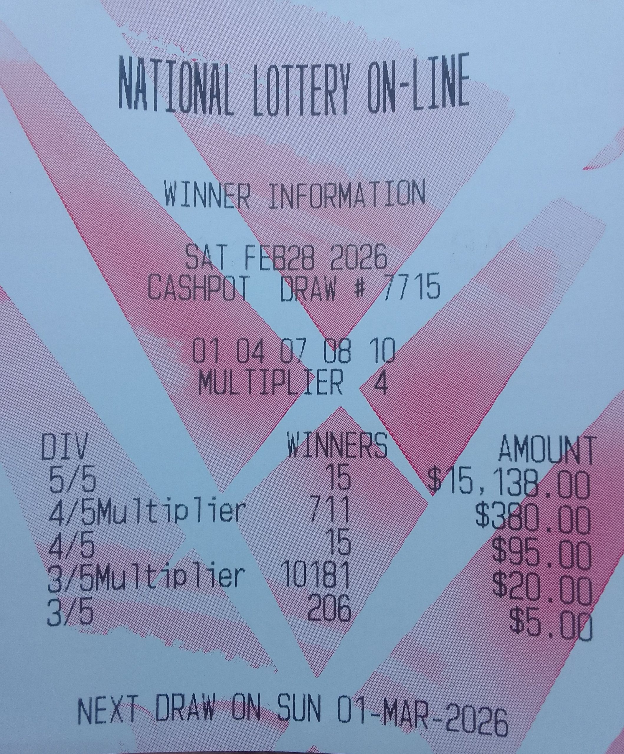 WARNING: Always ask for the winners information printout to confirm your payout before handing your ticket to ticket agents since dishonest agents may claim your winnings for themselves.