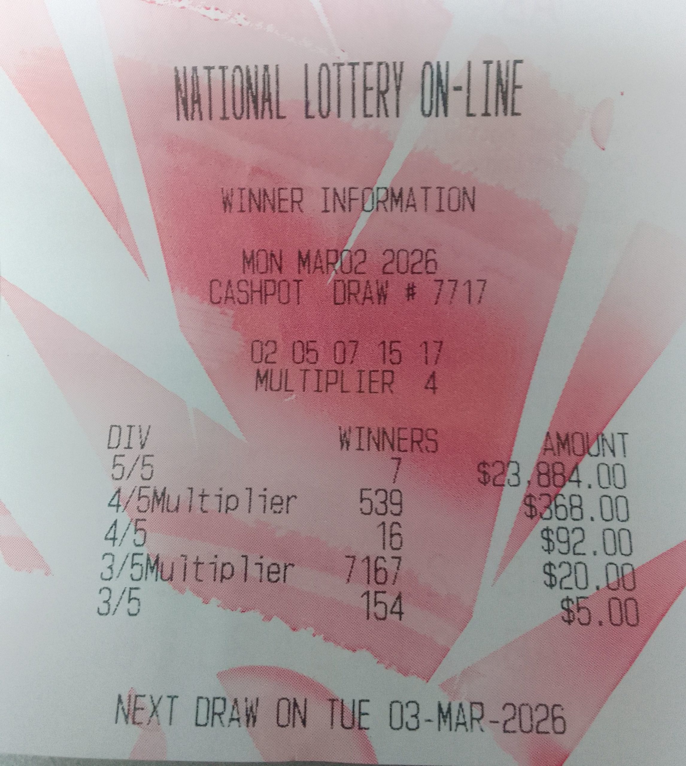Draw Number: 7681