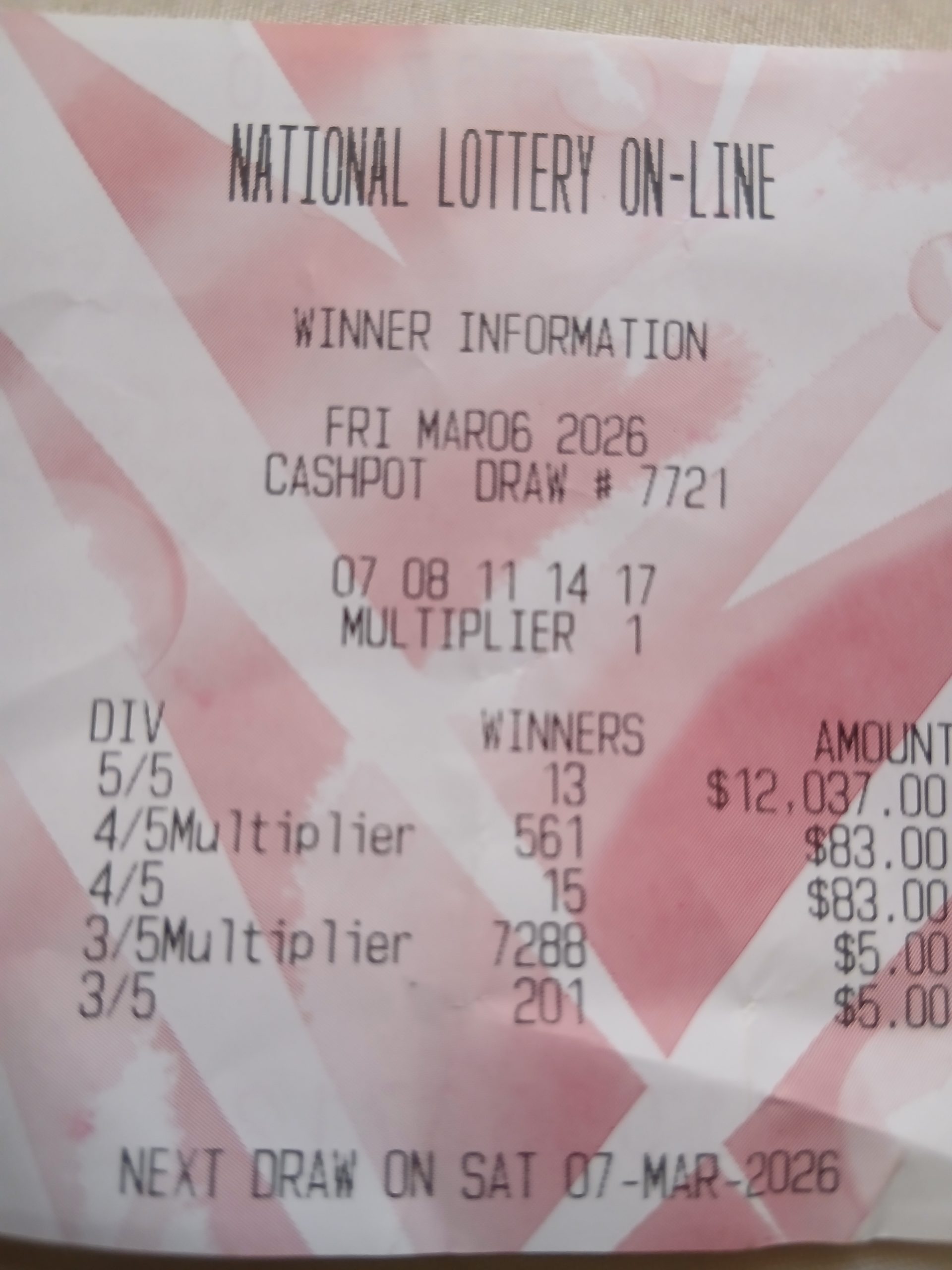 Same here guessing alot of ppl won 4 out of 5 numbers