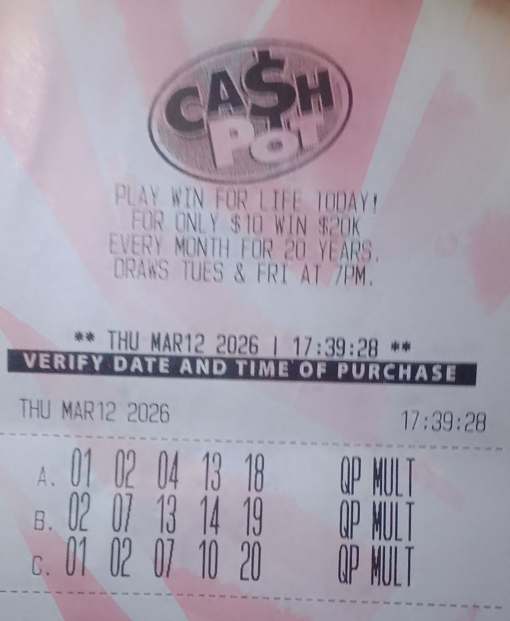 Hello All…..How would you feel about sharing your Ca$hpot stories or pose questions about the game and obtain answers. For example, you may want to know how many times your five numbers have played in the past, or something about the history of the game. Do you, for example, know that at one time you could have won if you played 2,7,10,19, 24? Or are you aware of the roll-down feature in the game? I know that there are various sites that can provide some of your answers but not all of them are up-to-date or even accurate… Post a question if you have one….