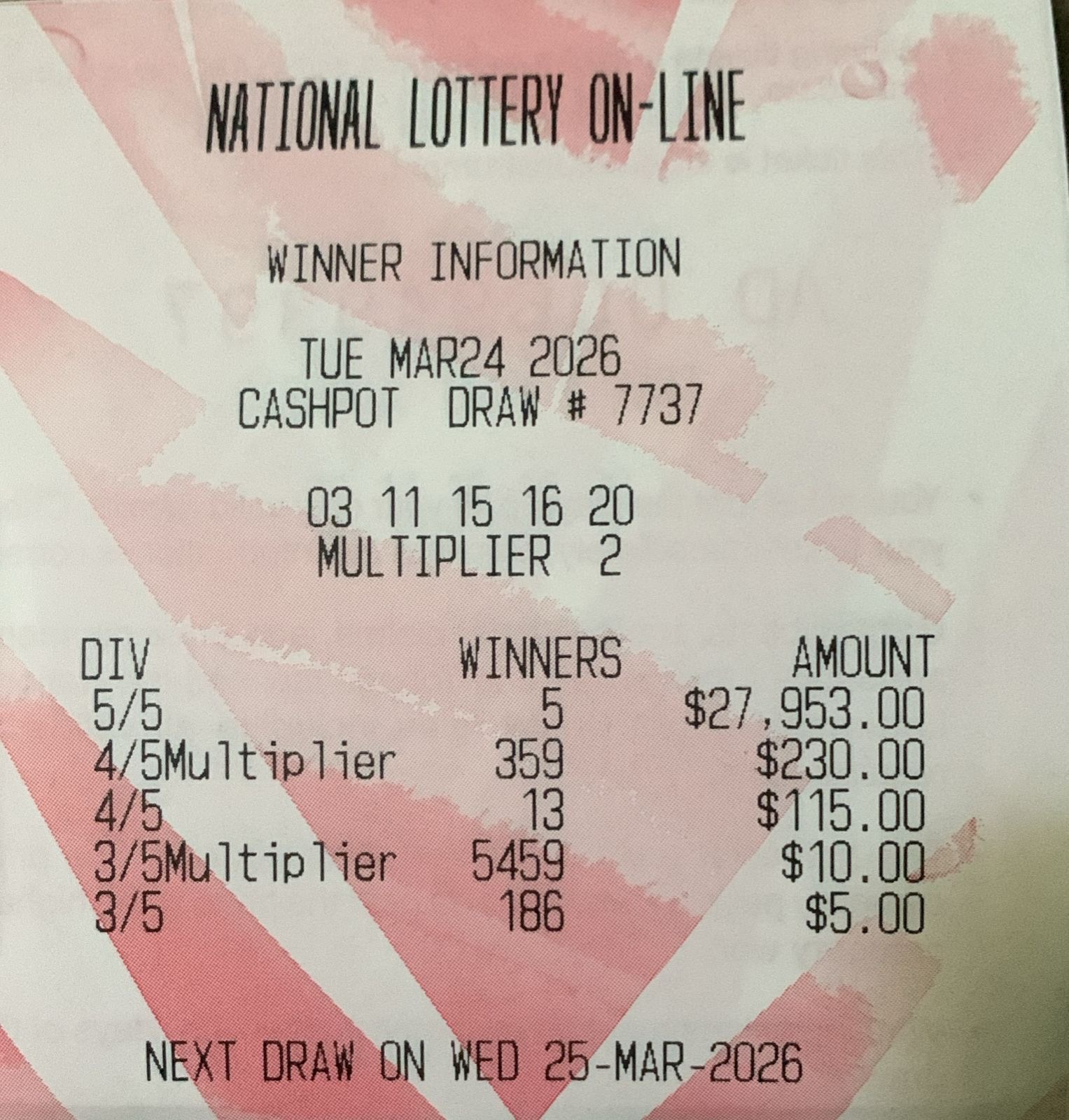 Draw Number: 7737