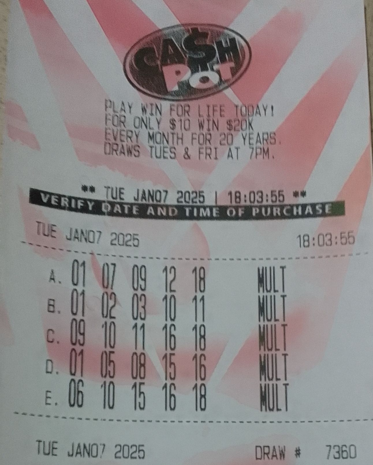 Thanks millionaire. 2018 was twice in one week and now. Also check this (2018 are the numbers won with yesterday–1-8-10-12-18 (all the said digits). However all three times i won were quick picks.