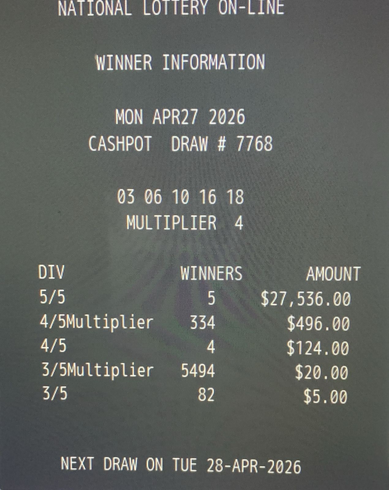 Draw Number: 7767