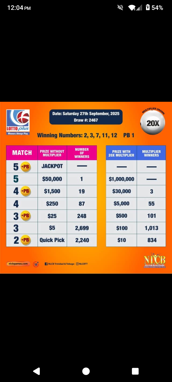 PLEASE NOTE THAT THIS IS NOT THE NLCB's OFFICIAL WEBSITE. However, the Lotto Plus results are primarily acquired from the NLCB's televised draws to ensure accuracy. The