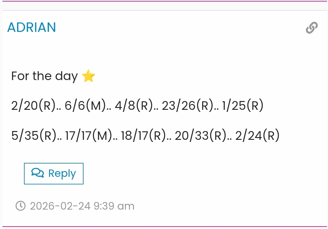 2/20(R).. 6/6(M).. 4/8(R).. 23/26(R).. 1/25(R)