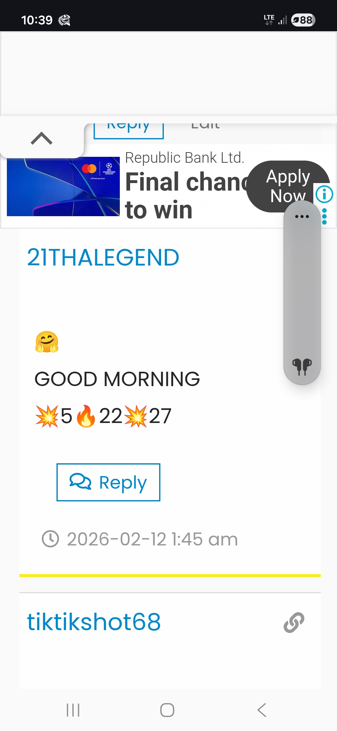 Good morning… congrats to winners yesterday and today in advance…