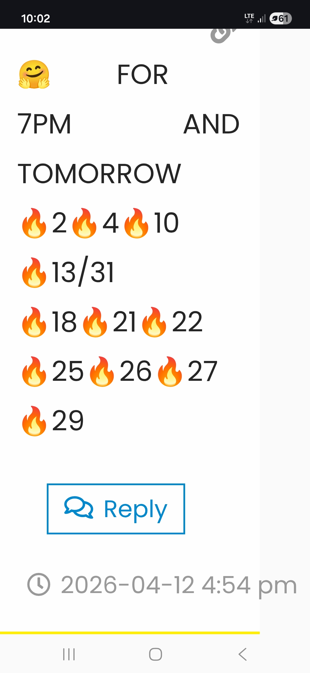 Goodmorning I am going with 4. 13. 31. 22. 6. 2
